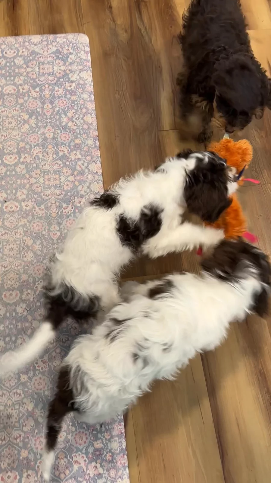 These 3 boys are 11 weeks old, sleeping in their crates at night and going outside to potty every couple of hours during the day and they are ready to come home to a nice warm lap for lots of puppy snuggles.