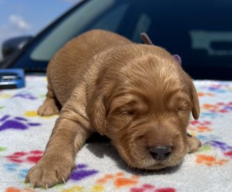 I'm Karisa B., the breeder behind Bee’s Retrievers located in Sedalia, MO. Our dogs are bred to have solid temperaments, be handler oriented, trainable, great with other animals, and great with kids! Our priority is the health and temperament of our dogs and puppies, and matching you with your forever companion.