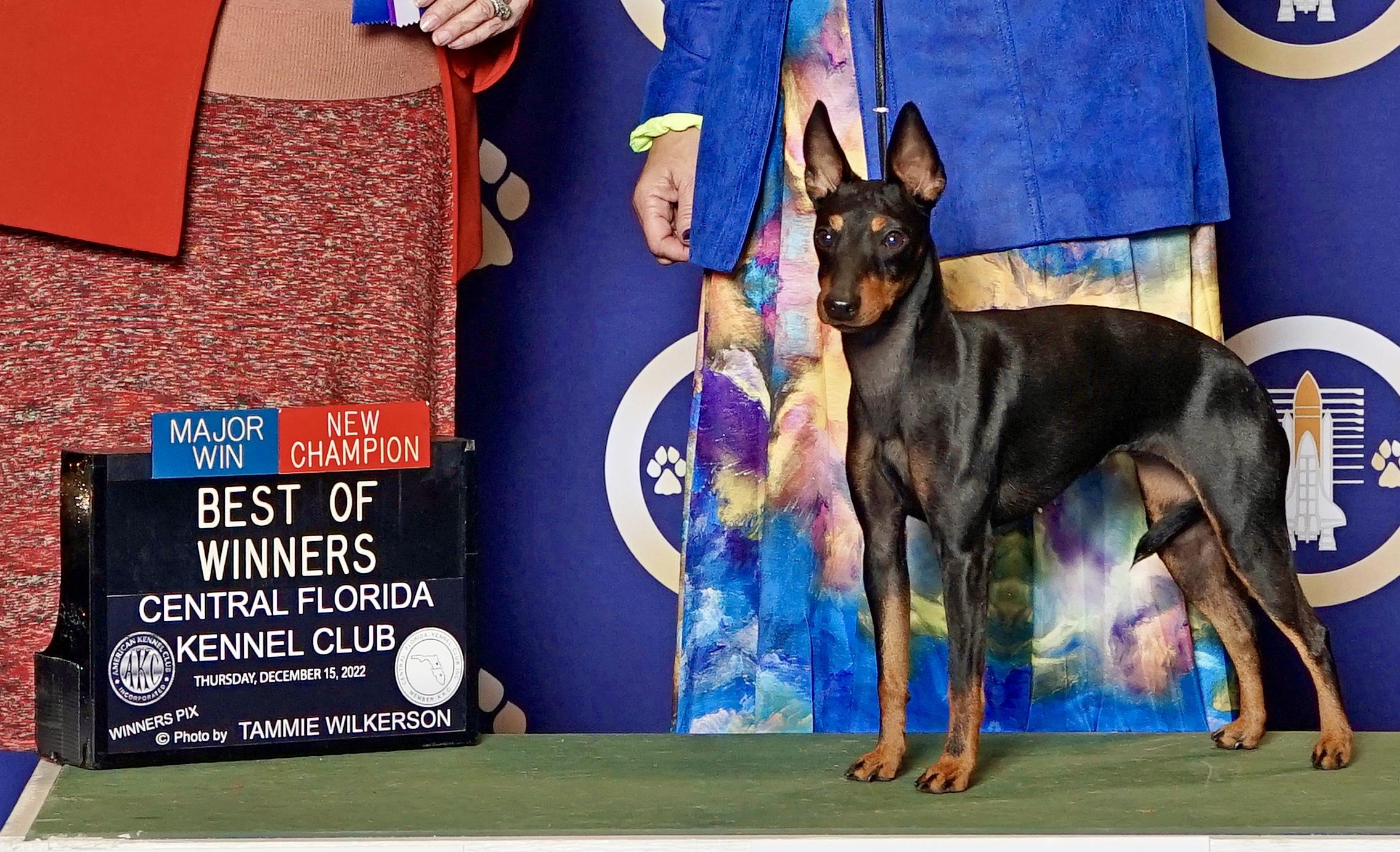I'm Wendy S., the breeder behind Belev Itornot Manchester Terriers located in Tampa, FL. We only breed dogs that are healthy, have wonderful temperaments, and are outstanding examples of their breed. Holding ourselves to high standards is paramount to the well-being of our dogs and to the integrity of our program.