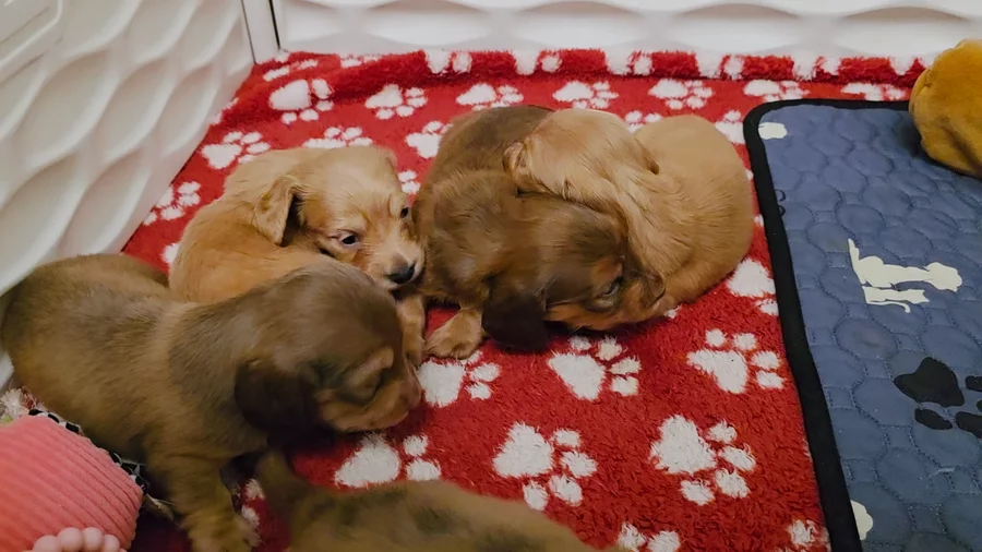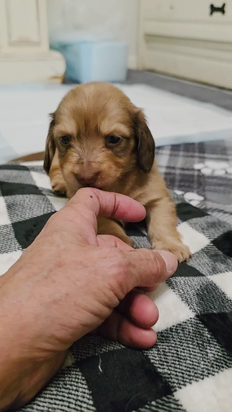 My puppies are raised in my home and handled multiple times a day. we are here for the entire life of your puppy to answer any and all questions and concerns. We just want a wonderful happy home for each and every one of our babies, and ask that you continue to provide a wonderful inside home as well as keep vaccines, deworming and flea/tick prevention up to date. Occasional pictures and updates would be very appreciated as we like to see our babies grow! Thank you for choosing Belinda’s little Darling dashounds, and we look forward to providing you with your new forever friend.