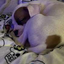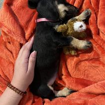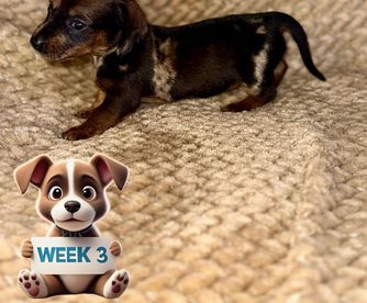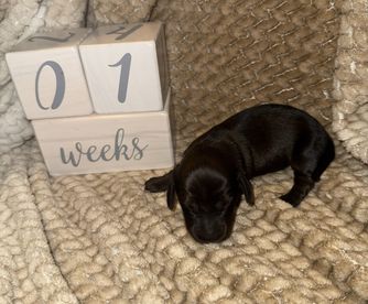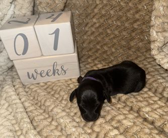 Little Pluto is our last baby available and only has one week until he is ready for his forever home. Just like with all our babies, he will go home CKC registered, microchipped, fist set of vaccines and dewormer. He will also be sent home with a puppy care package including a bed, blanket, reusable pee pad, food and water bowl, potty bags and dispenser, chew toys, a 4 pound bag of food and puppy training treat to help make his transition easier.