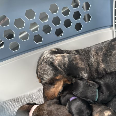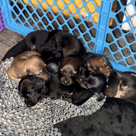 Our puppies include red, black, black and tan, and dapple. Colors will vary depending on the parent dogs.