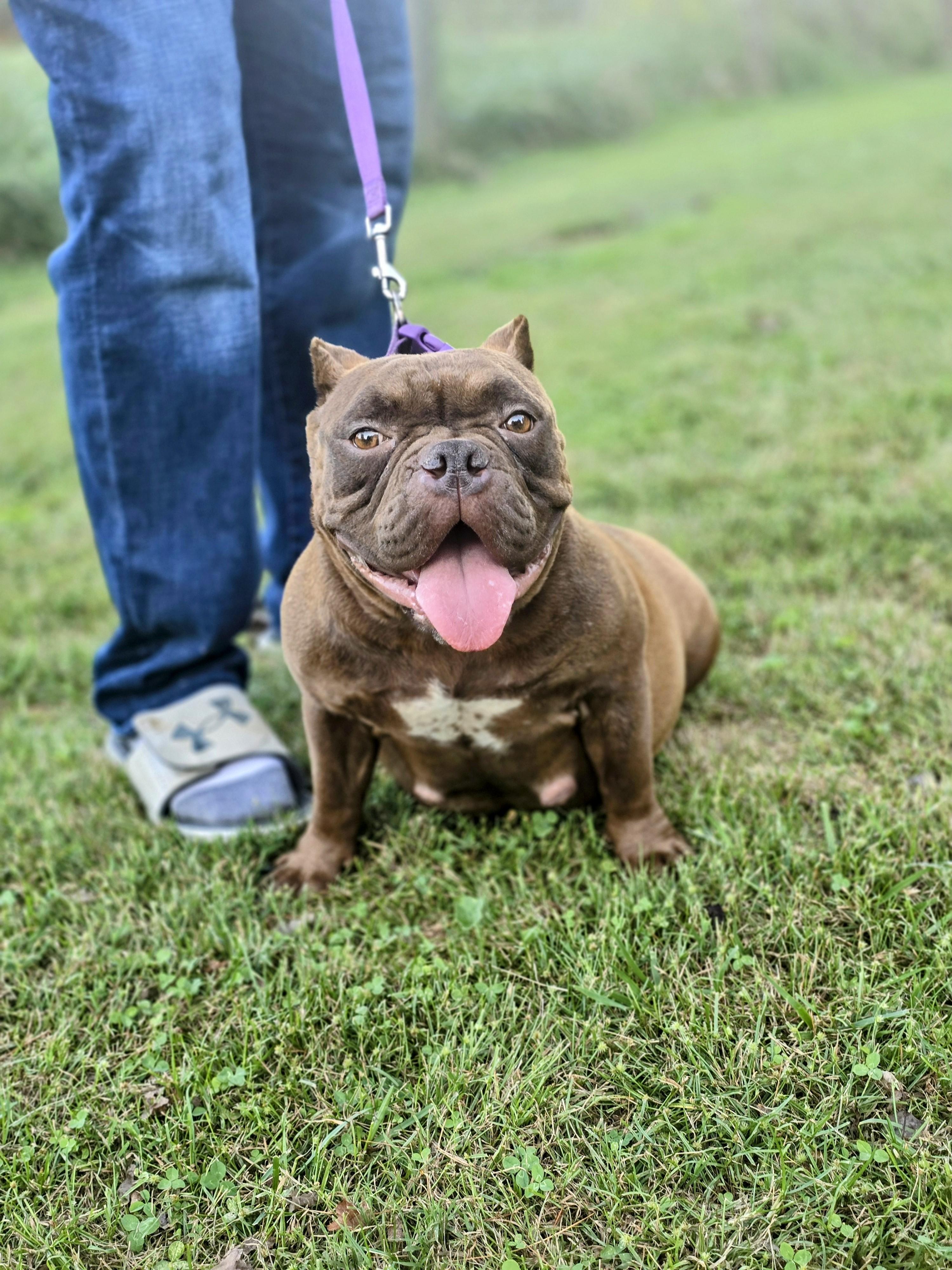 Cocoa is a female American Bully. Carefully selected as a great representative of her breed, Maranda decided to make her part of their program. Maranda has passed Good Dog’s screening process, which involved a review of their breeding practices, environment, and the mental and physical health of their dogs.