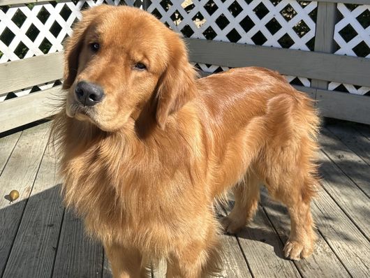Zuess or "Zeus" is a male Golden Retriever. Carefully selected as a great representative of his breed, Karen decided to make him part of their program. Karen has passed Good Dog’s screening process, which involved a review of their breeding practices, environment, and the mental and physical health of their dogs.