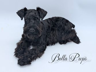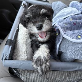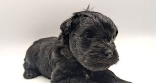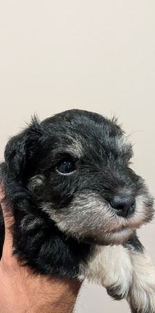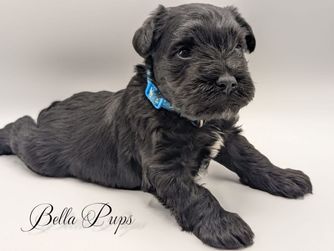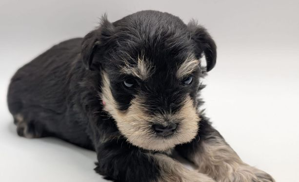 Our puppies include salt and pepper, black and silver, and black. Colors will vary depending on the parent dogs.