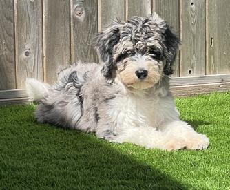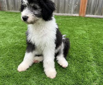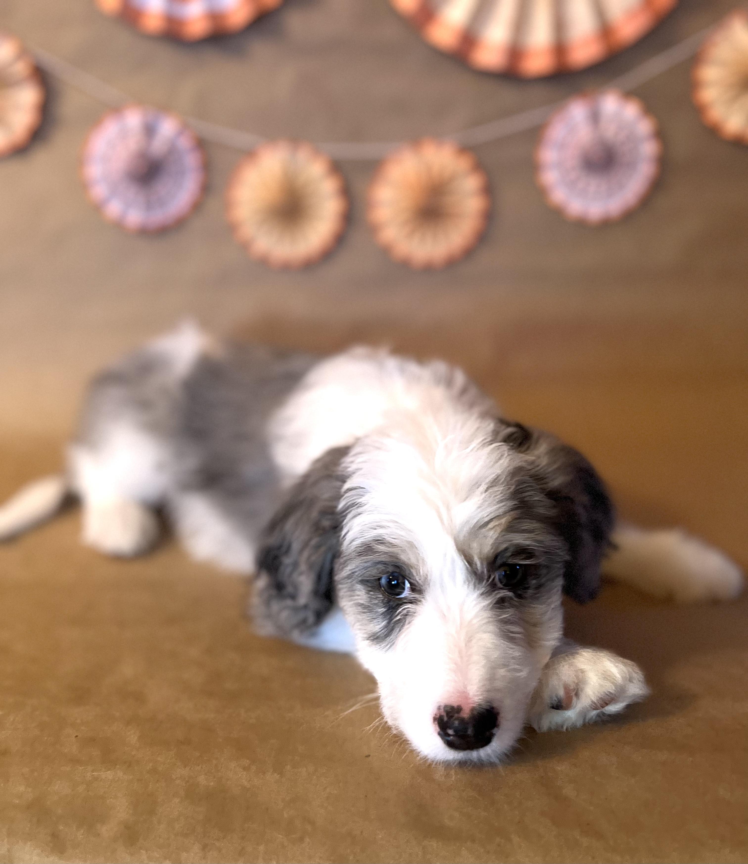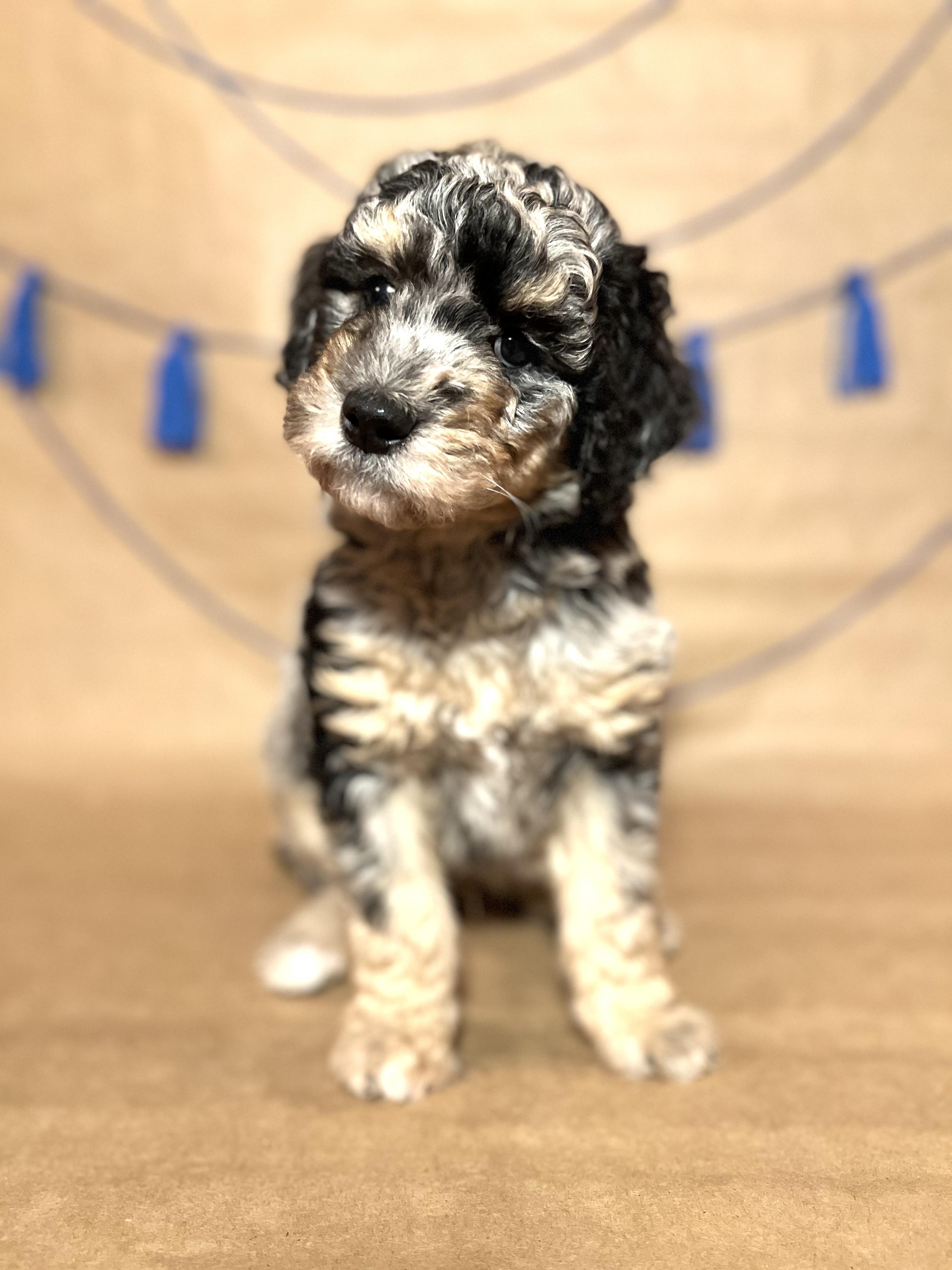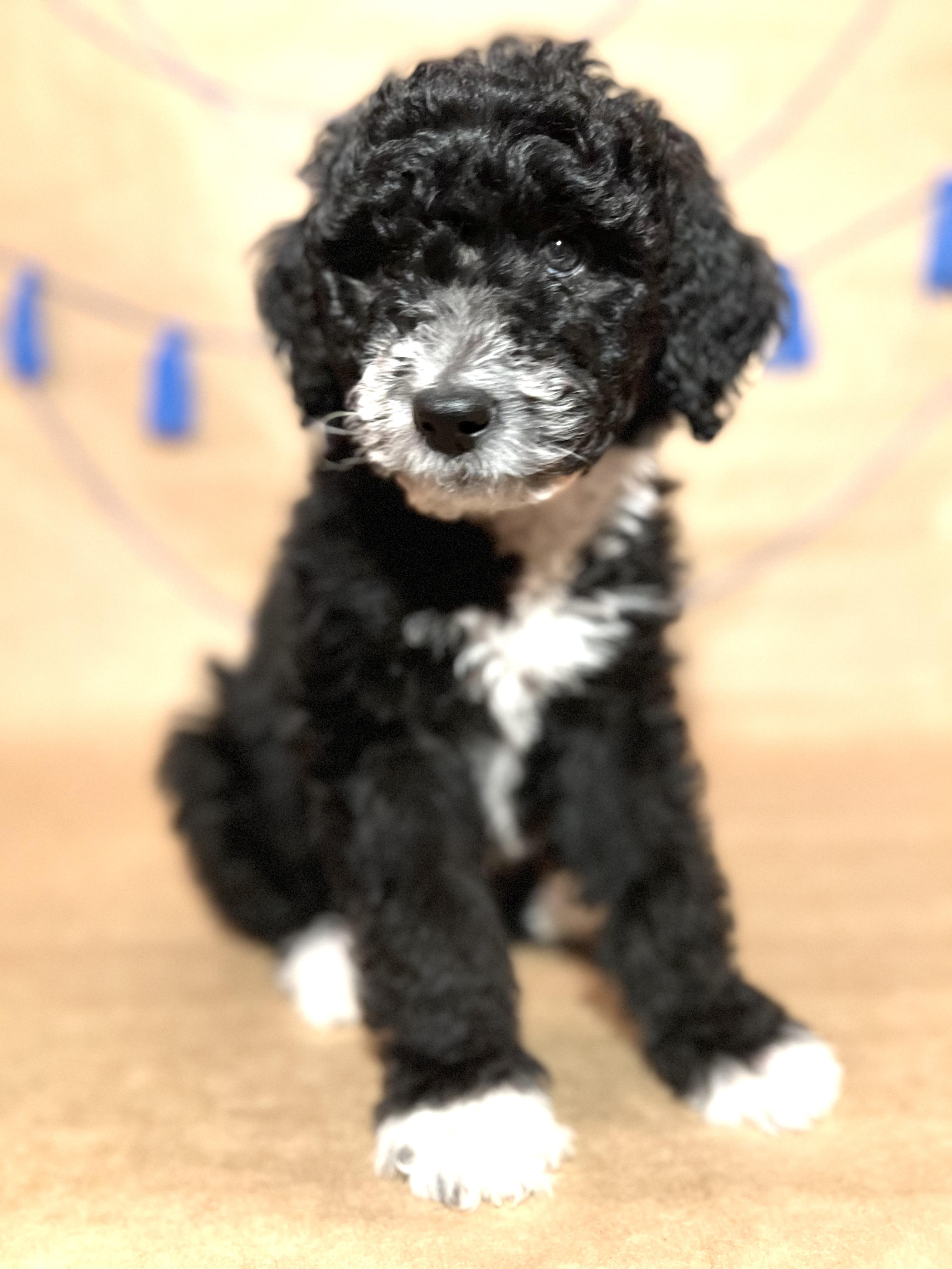 Our Aussiedoodle puppies include blue merle, black phantom, black and white, and black tri-color. Bernedoodle puppies include sable, black, black and white, tri-color, phantom, and merle. Colors will vary depending on the parent dogs.