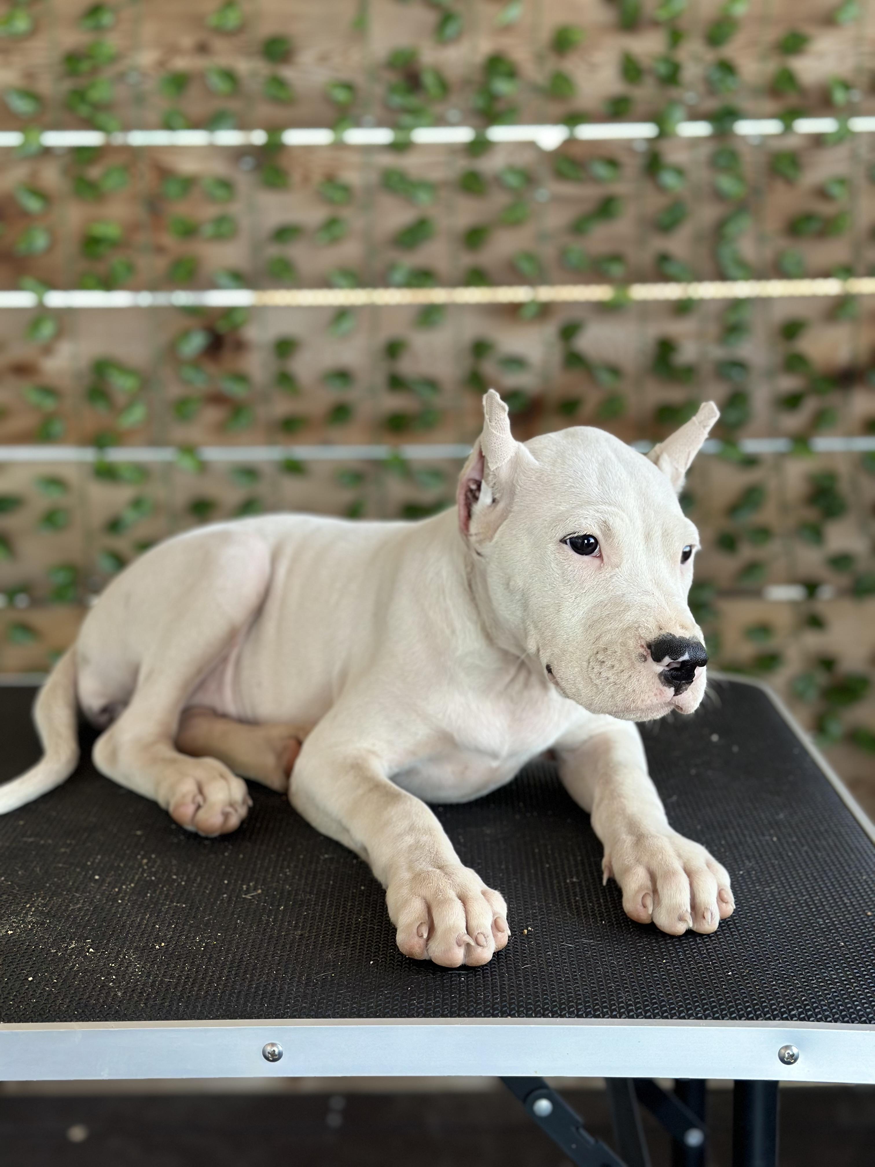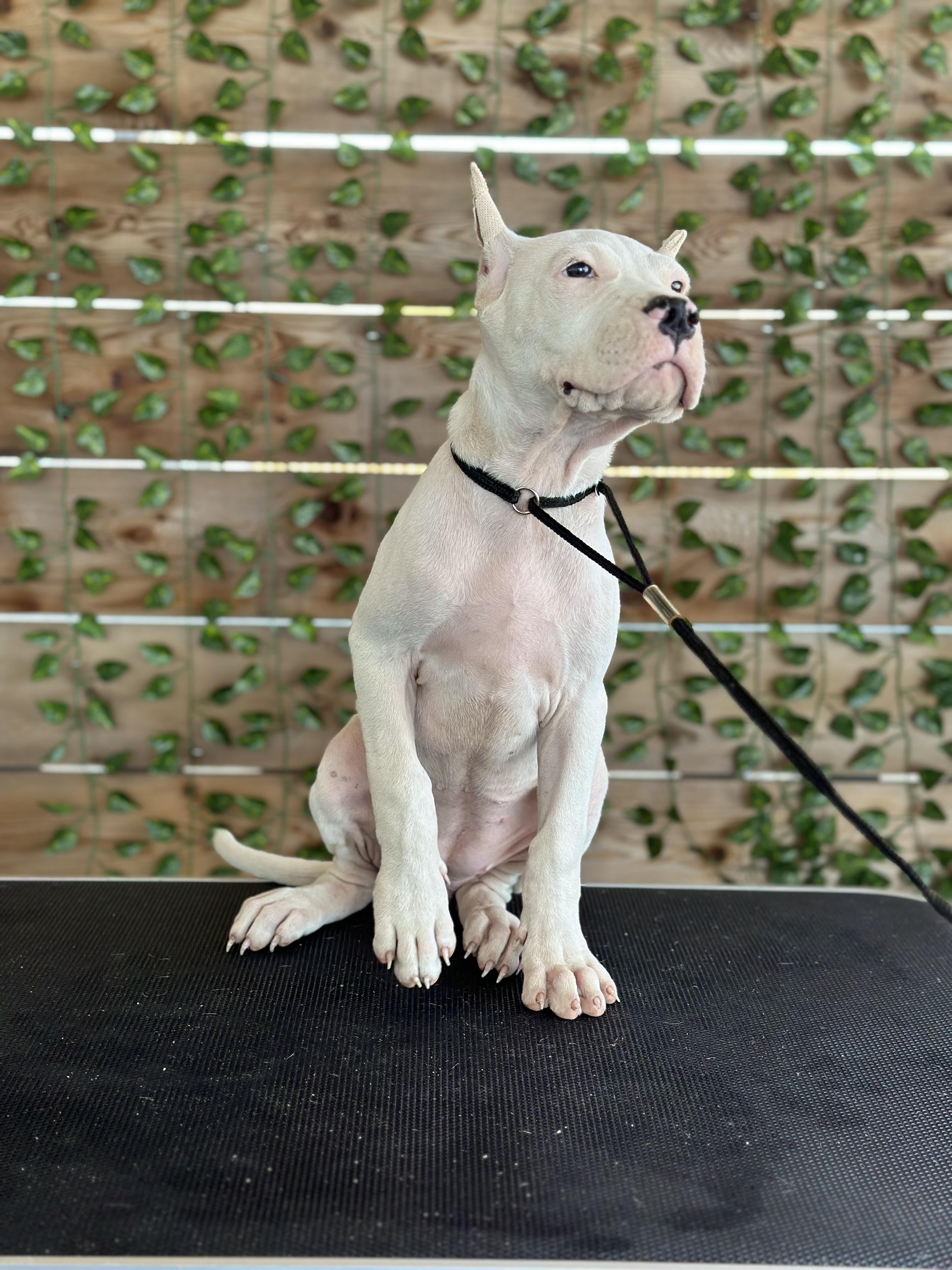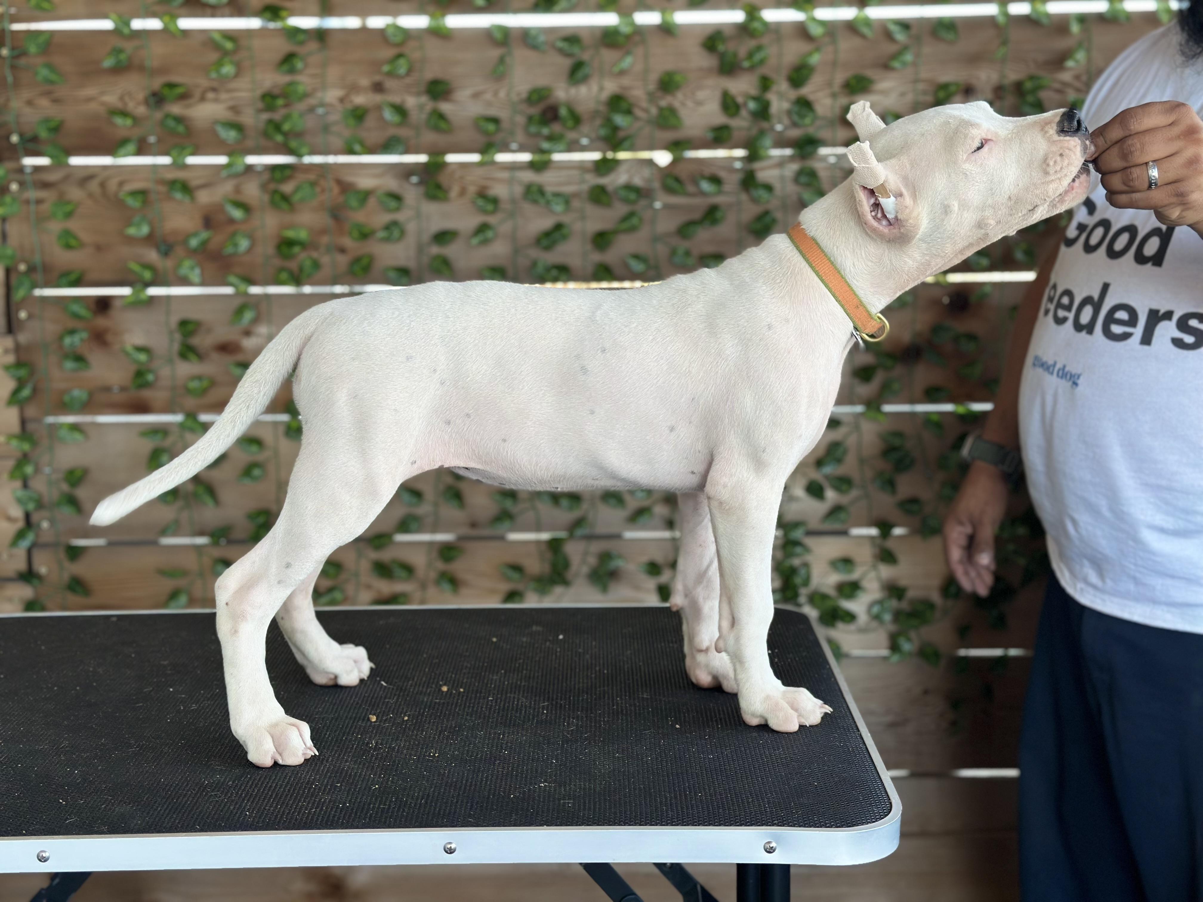 Omega is a female Dogo Argentino almost 7 years old. Carefully selected as a great representative of her breed, Victoria decided to make her part of their program. Victoria has passed Good Dog’s screening process, which involved a review of their breeding practices, environment, and the mental and physical health of their dogs.