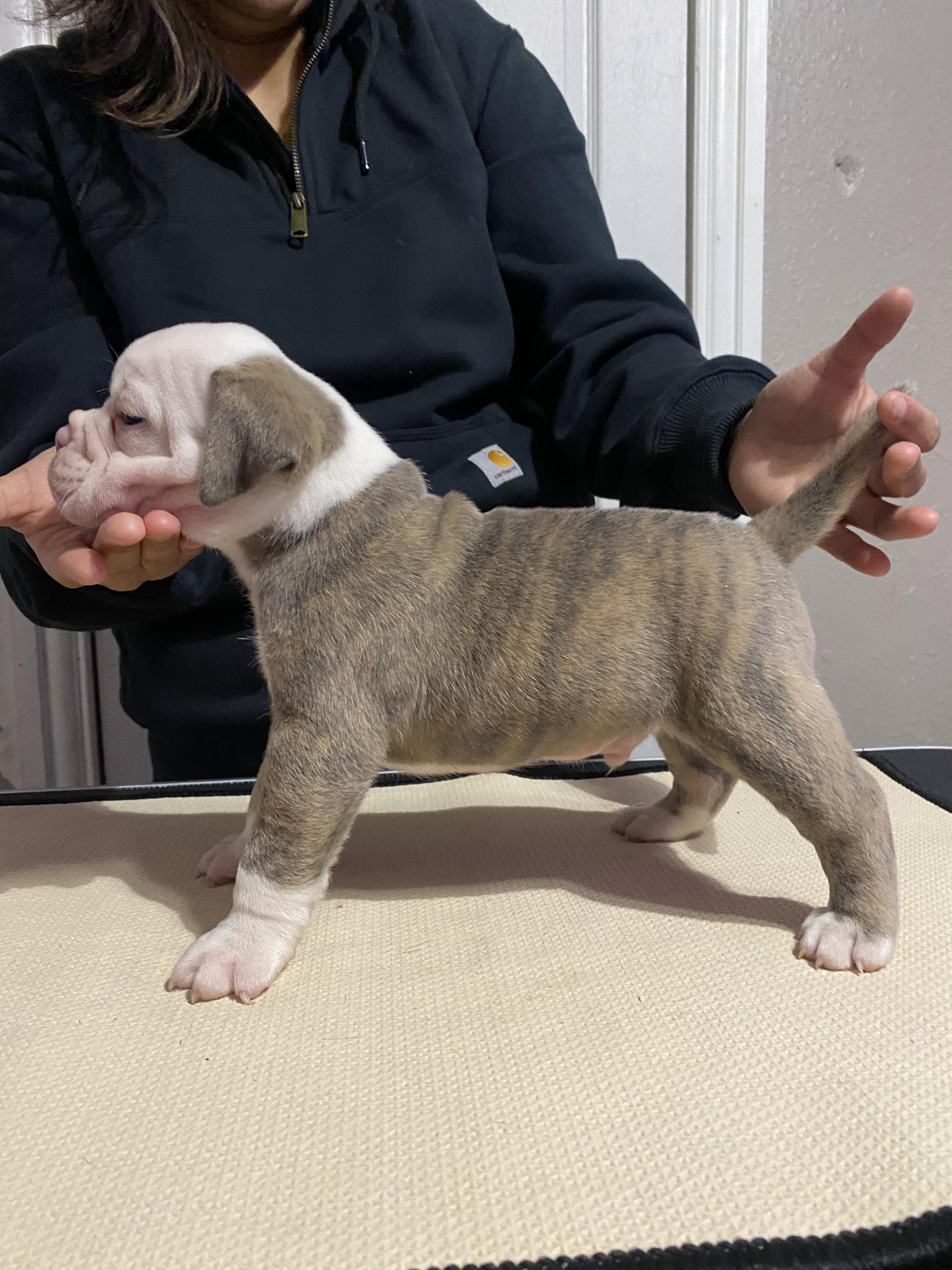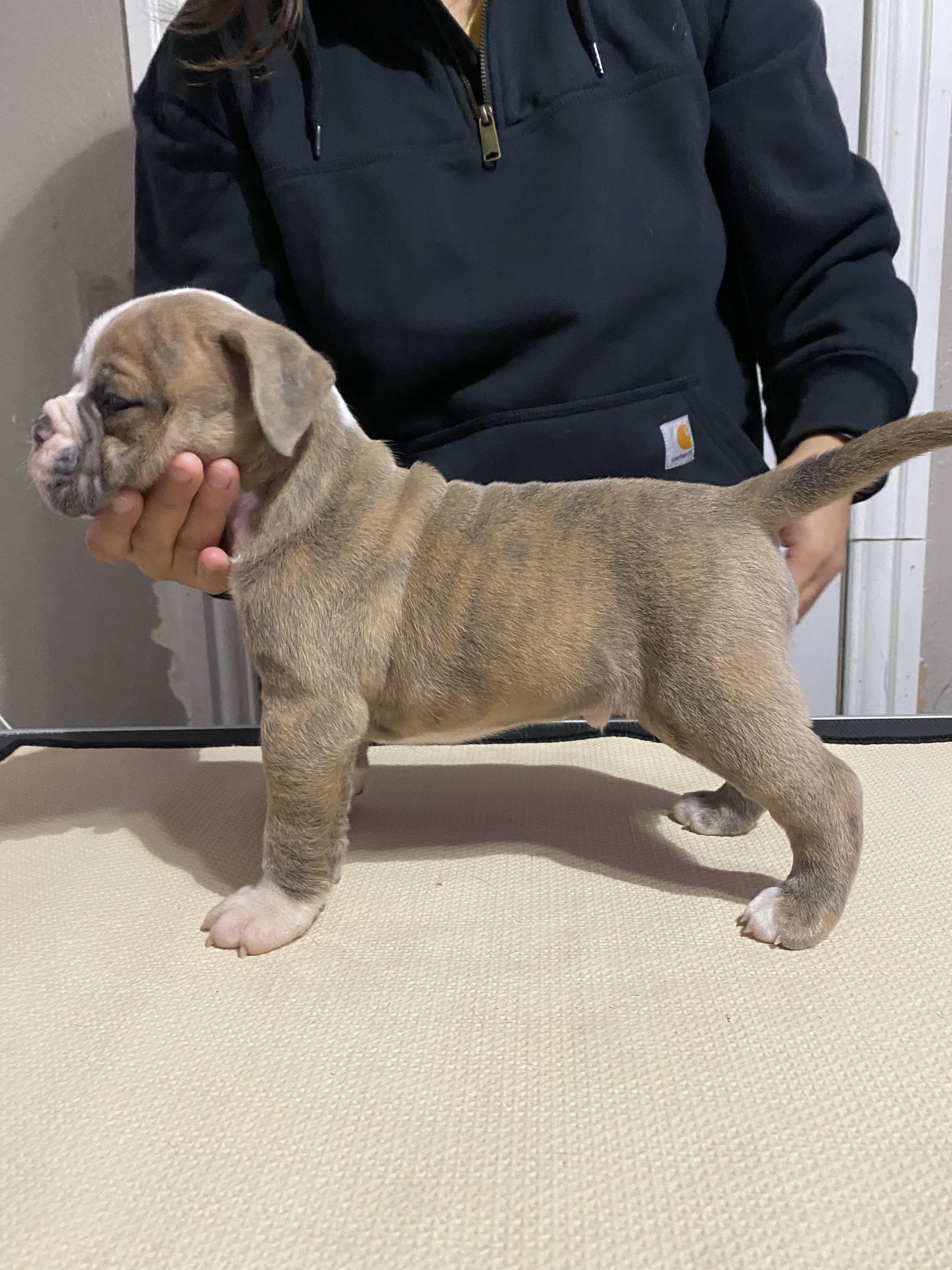 Justice is a female Olde English Bulldogge over 4 years old. Carefully selected as a great representative of her breed, Victoria decided to make her part of their program. Victoria has passed Good Dog’s screening process, which involved a review of their breeding practices, environment, and the mental and physical health of their dogs.