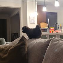 Daphne is doing great! She is getting to know her brother, Theodore. They love playing together. She is exploring every nook and cranny. Her favorite place is on top of the sofa, where she can see everything in her kingdom.