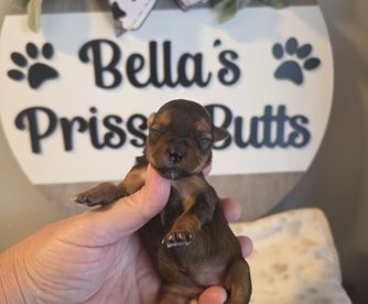 We are enjoying our little fur baby Quest , after two weeks he already knows where to go potty, he is so smart . Thank you for making our experience smooth and easy , I would highly recommend Marvin /Jennifer From Bella"s Prissy Butts.
