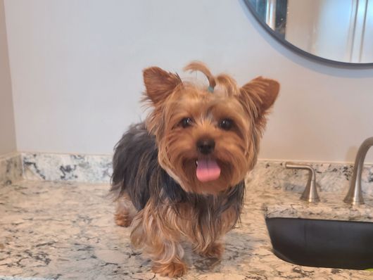My Family had a Yorkie “Mocha” who we raised from a puppy until almost 17 years. When we lost him this year we never thought we would find another Yorkie like Mocha (perfect in all ways) and a big brother to our boxer “Boomer.” We found Marvin and Jennifer on Good Dog advertising a puppy named “Solo”. Solo was the only surviving puppy in this liter (hence the name). Our family took the dive and felt guided by our Mocha. The experience with both Marvin & Jennifer was wonderful. Updated on his progress along with photos and pickup day. Solo was delivered he is perfect. The only words I say is they do a great job. Solo is tiny but mighty and is that perfect addition to our family. Thank you so very much for everything Marvin and Jennifer. If you are hesitant all I can say is don’t be they are great and their puppies are Yorkie perfect. 🥰 The Gerwans