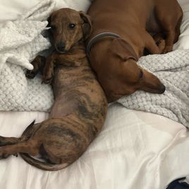 Suzanne is an extraordinary dachshund breeder who exceeded our expectations in every way! From the moment we showed interest in a puppy, she showered us with kindness and knowledge. Suzanne patiently answered all our questions and provided us with invaluable tips and recommendations for welcoming our first puppy. Her thoughtfulness and dedication were evident from the start. She regularly sent us updates, including adorable pictures and videos of our puppy, allowing us to form a bond even before bringing them home. To our surprise, Suzanne provided a comprehensive goodie bag filled with essential items, ensuring a smooth transition for both the puppy and us. Even after we brought our puppy home, Suzanne continued to support us. She followed up to ensure our comfort and provided guidance on bedtime routines and general puppy care. Suzanne's expertise in dachshund breeding shone through, resulting in a happy, healthy, and well-socialized puppy! Highly recommended! :)