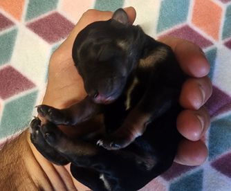 Our puppies are black and silver. Colors will vary depending on the parent dogs.