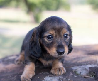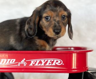 Our Dachshund puppies include black and tan and dapple. Colors will vary depending on the parent dogs.