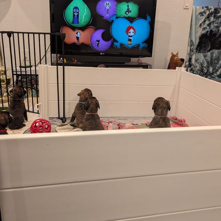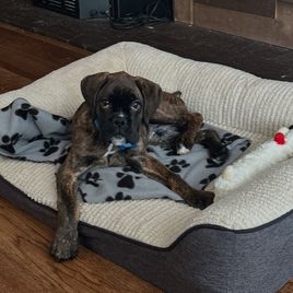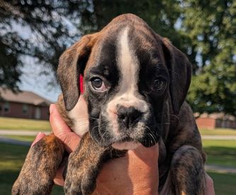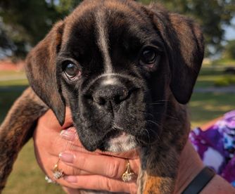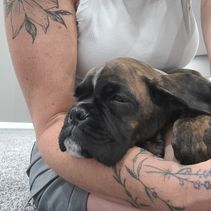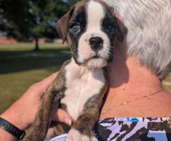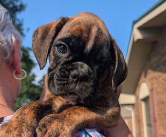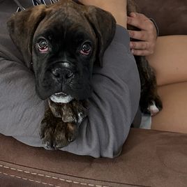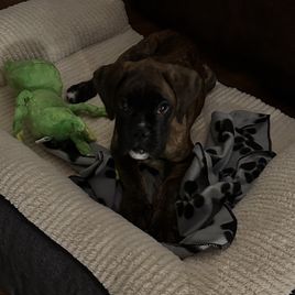 Karen was absolutely wonderful to work with! She was incredibly responsive and was willing to answer any and all questions that I had. After losing our previous Boxer earlier in the year, I started my search for a reputable breeder that cared about the breed more than just making money. Karen immediately put me at ease, because she also wanted to know about our family, our home, and our experience with boxers. She was able to provide genetic testing information, and was even willing to test our puppies (I paid for the test) to make sure that they were for sure clear of the genetic condition that took our boy earlier in the year. She even Facetimed us to let us watch her swab their mouths, and explained that she had separated the puppies from their mother to make sure it was an accurate test sample. While we were waiting, she showed us our puppies and the rest of the litter and let us meet their mom. Her home was clean, and there was no doubt that her adult dogs are loved and cared for. She even sleeps down in the room with the mom and puppies for a while to make sure everything is okay. When they were ready to come home, she even delivered them to our house (for a very reasonable fee).