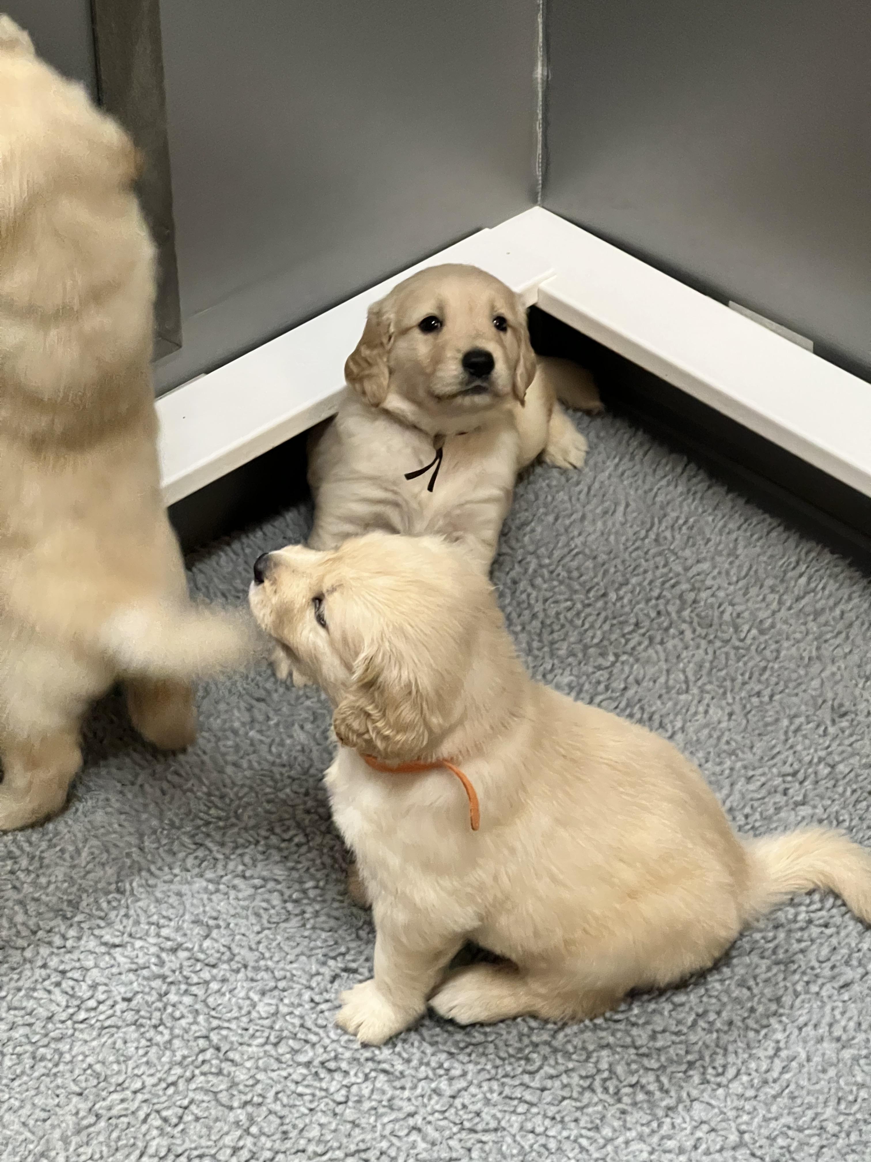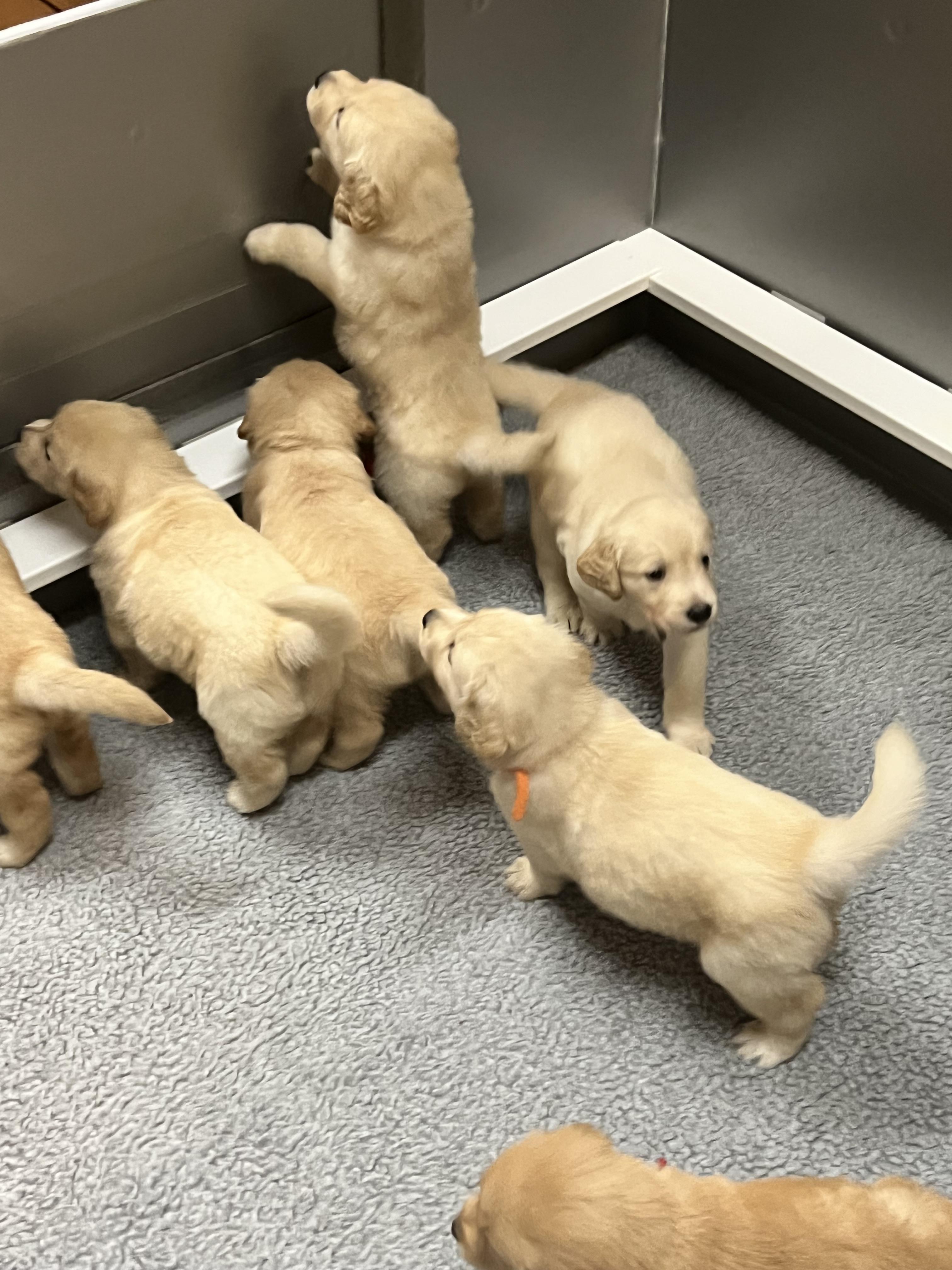 Our Spinone Italiano puppies include white, orange roan, and brown roan. Labrador Retriever puppies include black and yellow. Golden Retriever puppies include golden and light golden. Colors will vary depending on the parent dogs.