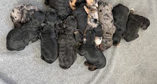 Our puppies include cream, apricot, black, and merle. Colors will vary depending on the parent dogs.
