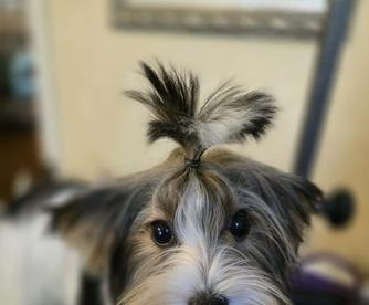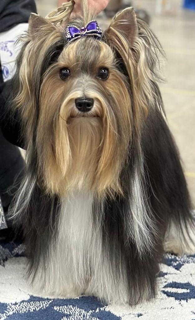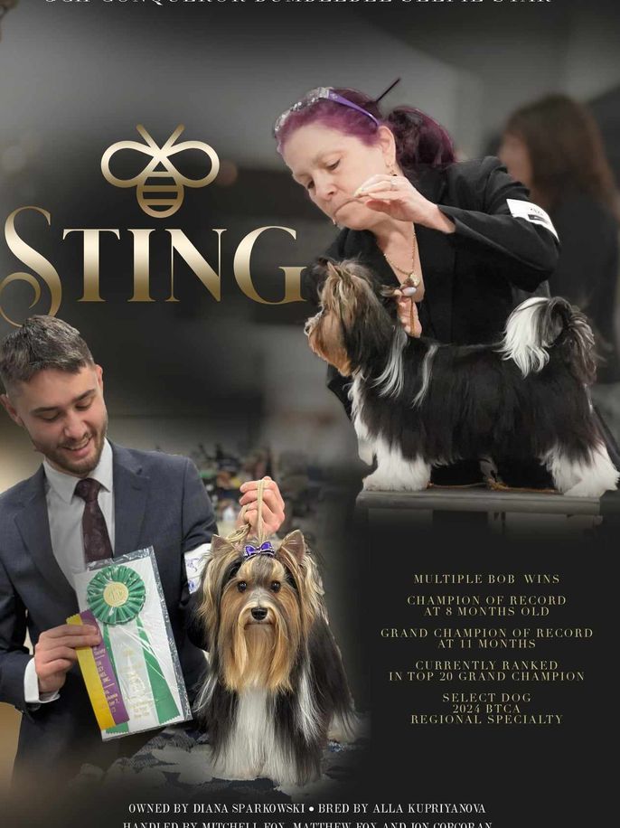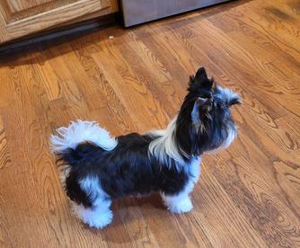 Sting is a AKC grand champion bronze, he is 18mos old, has been a embark tested clear, and only needs his eye test to complete is OFA certification. His patellas are 00 and heart -normal. He has won Select dog awards at 4 regional Biewer terrier specialties, as well as Select dog at 148th westminster dog show this year. He is available for STUD services.