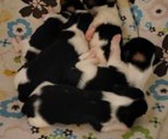 Stan is in the backround of this photo - he has a dark black saddle and irish pattern face - white muzzle and blaze. He is 1 and half years of age - he is one of Bizzy's boys, and Coco. - He is DNA andgenetic tested clear.