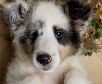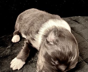 Sparrow is the grandson of the 2020 Westminister Best In Show winner Conrad. Sparrow is a very flashy good coated blue Merle and is always happy-go-lucky and sweet as can be. AKC registered and health tested.