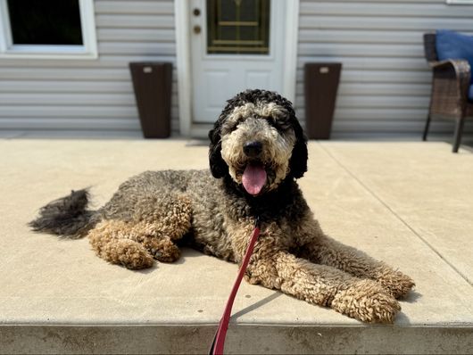 Apollo is a f1b sable bernedoodle. He weighs around 40lbs. He is such a good boy! Everyone who meets him loves him. He is genetic tested a clear.
