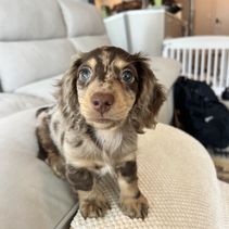 Marcie is a female Dachshund. Carefully selected as a great representative of her breed, Kara decided to make her part of their program. Kara has passed Good Dog’s screening process, which involved a review of their breeding practices, environment, and the mental and physical health of their dogs.