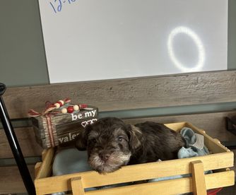 Our Dachshund puppies include piebald, cream, chocolate and tan, chocolate and cream, black and cream, and dapple. Miniature Schnauzer puppies include liver and salt and pepper. Colors will vary depending on the parent dogs.