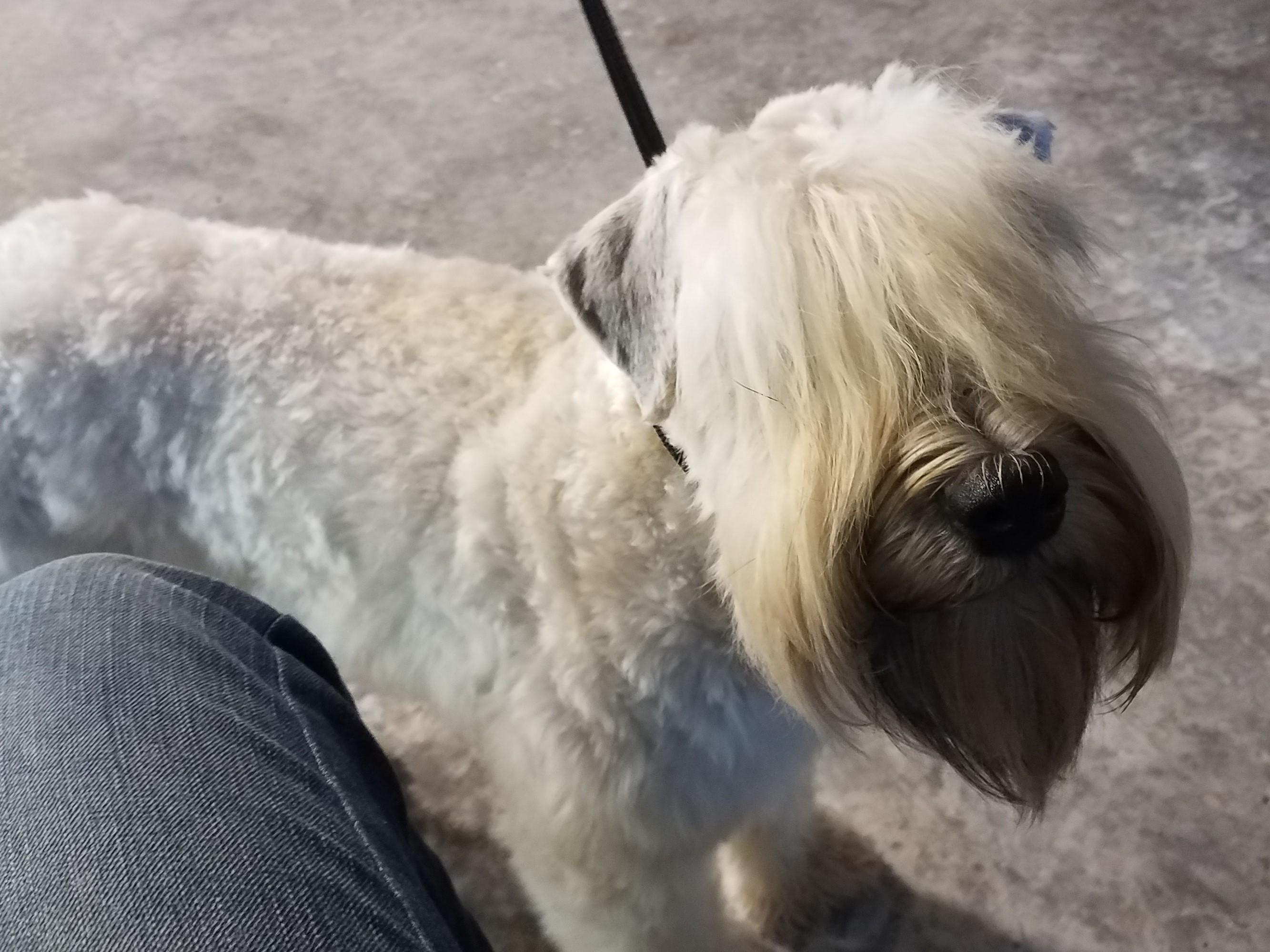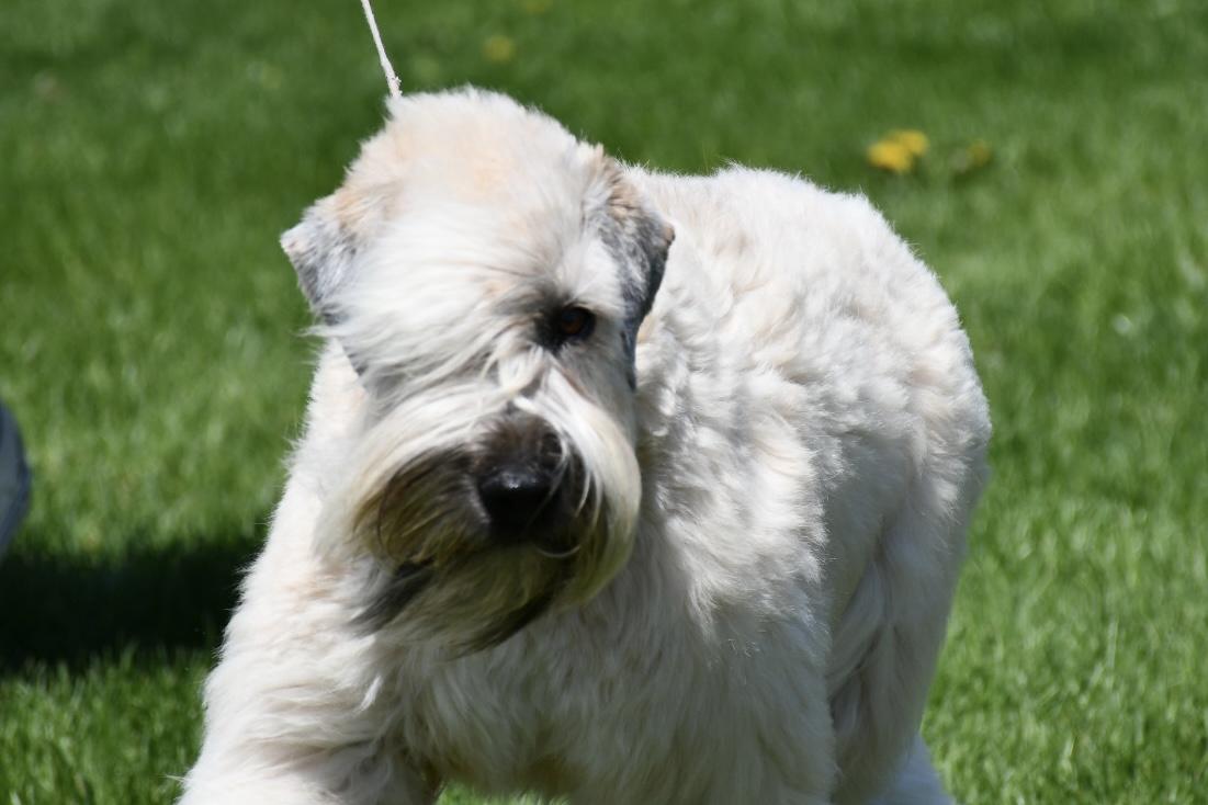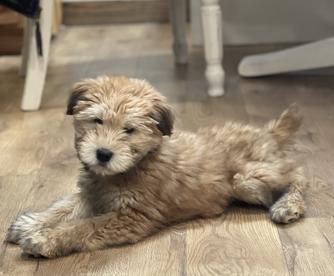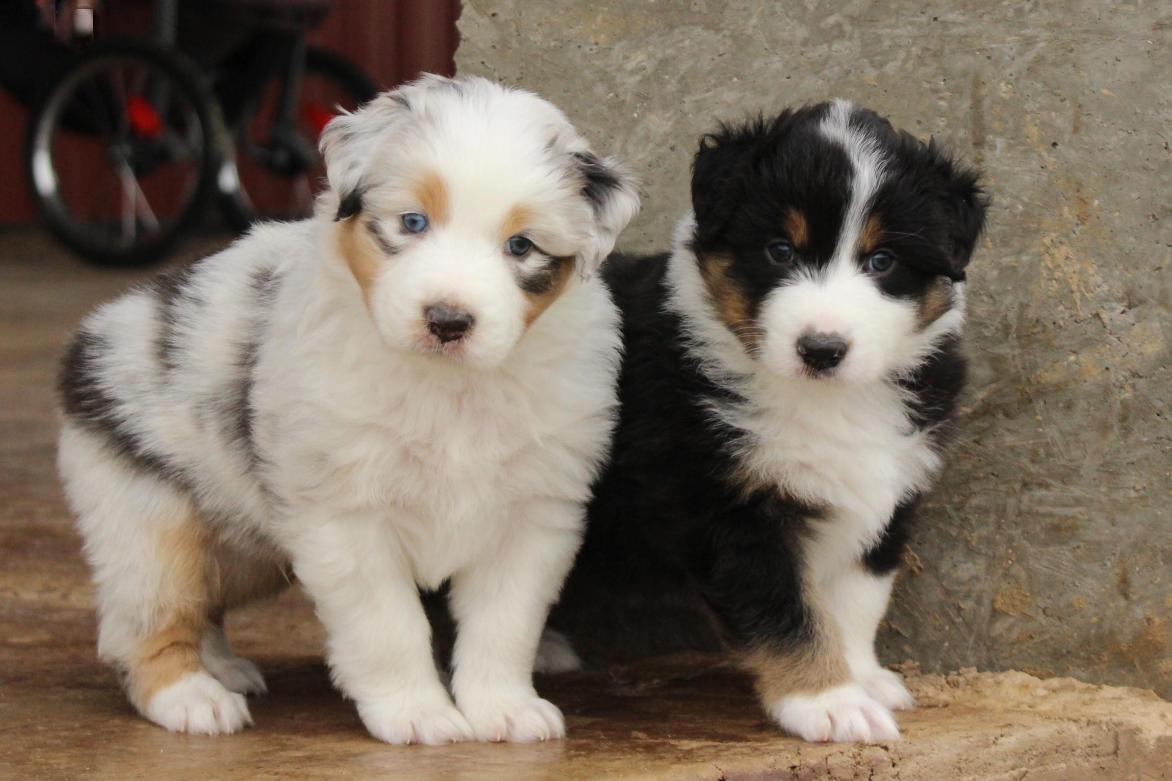 Our Soft Coated Wheaten Terrier puppies are wheaten. Australian Shepherd puppies include black, red merle, blue merle, and red. Colors will vary depending on the parent dogs.