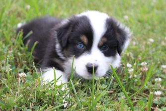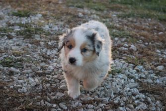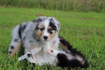 After a family member got an Australian Shepard, my husband and I fell in love with the breed. We didn’t want to rush in and had lots of questions and wanted to connect with a breeder that would match us with the Aussie that was a fit for us. Kaity was so knowledgeable and had given us great advice every step of the way. We are so happy with our sweet fella, Riptide, aka ‘Rip’. He is such a stable boy and the perfect mix of active and sweet. At five months he’s doing fantastic with training and learning his off switch. We could not be happier with our good boy.