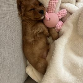 Esme is a female Cavalier King Charles Spaniel. Carefully selected as a great representative of her breed, M decided to make her part of their program. M has passed Good Dog’s screening process, which involved a review of their breeding practices, environment, and the mental and physical health of their dogs.