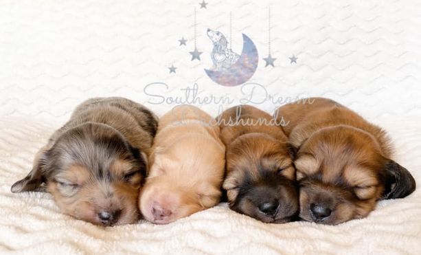 Our puppies include cream, red, chocolate and tan, black and cream, black and tan, and dapple. Colors will vary depending on the parent dogs.