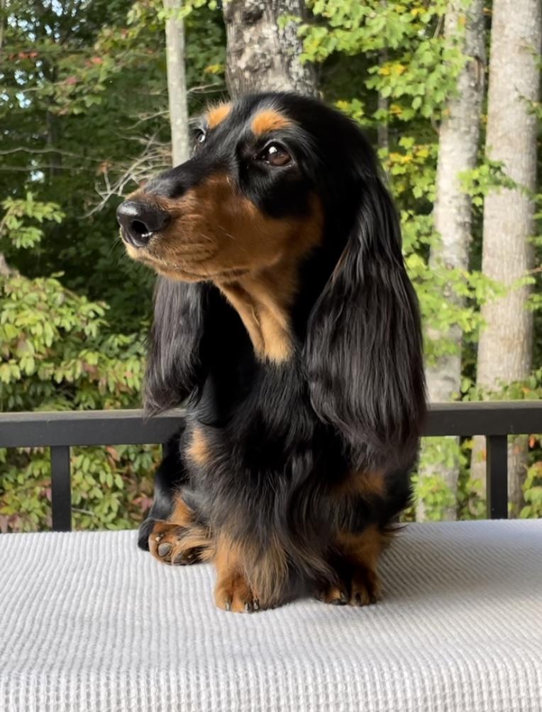 I purchased my first dachshund 18 years ago just before my husband and I got married. A black and tan smooth girl named Bella. Bella was also just our baby, and never a breeding dog, but she sparked a love for the breed in both of us, and the rest is history!