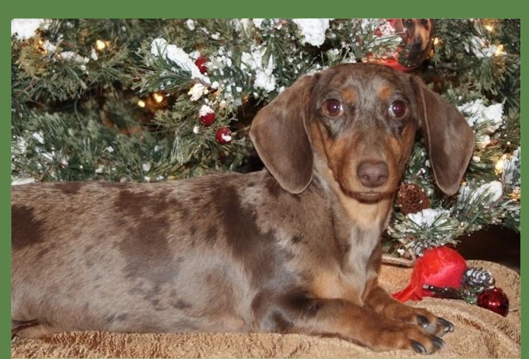 I fell in love with the breed in 1999, when I met a friend's piebald dachshund named Rip. I had never been a dog person, but when I met Rip, I was hooked on the breed! I started studying the breed and made friends with breeders to have them mentor me. Our first litter was born April 1, 2002.