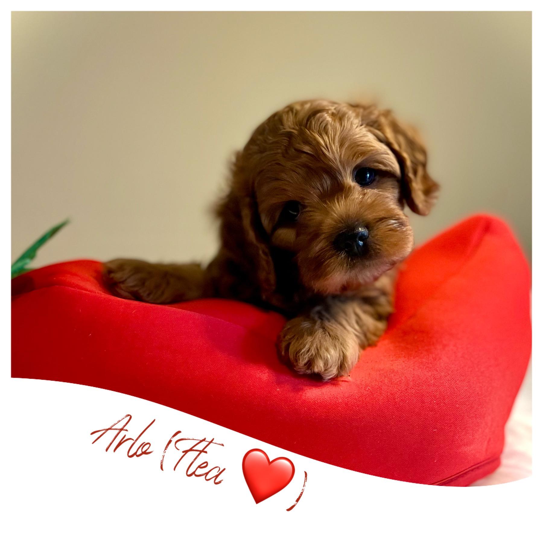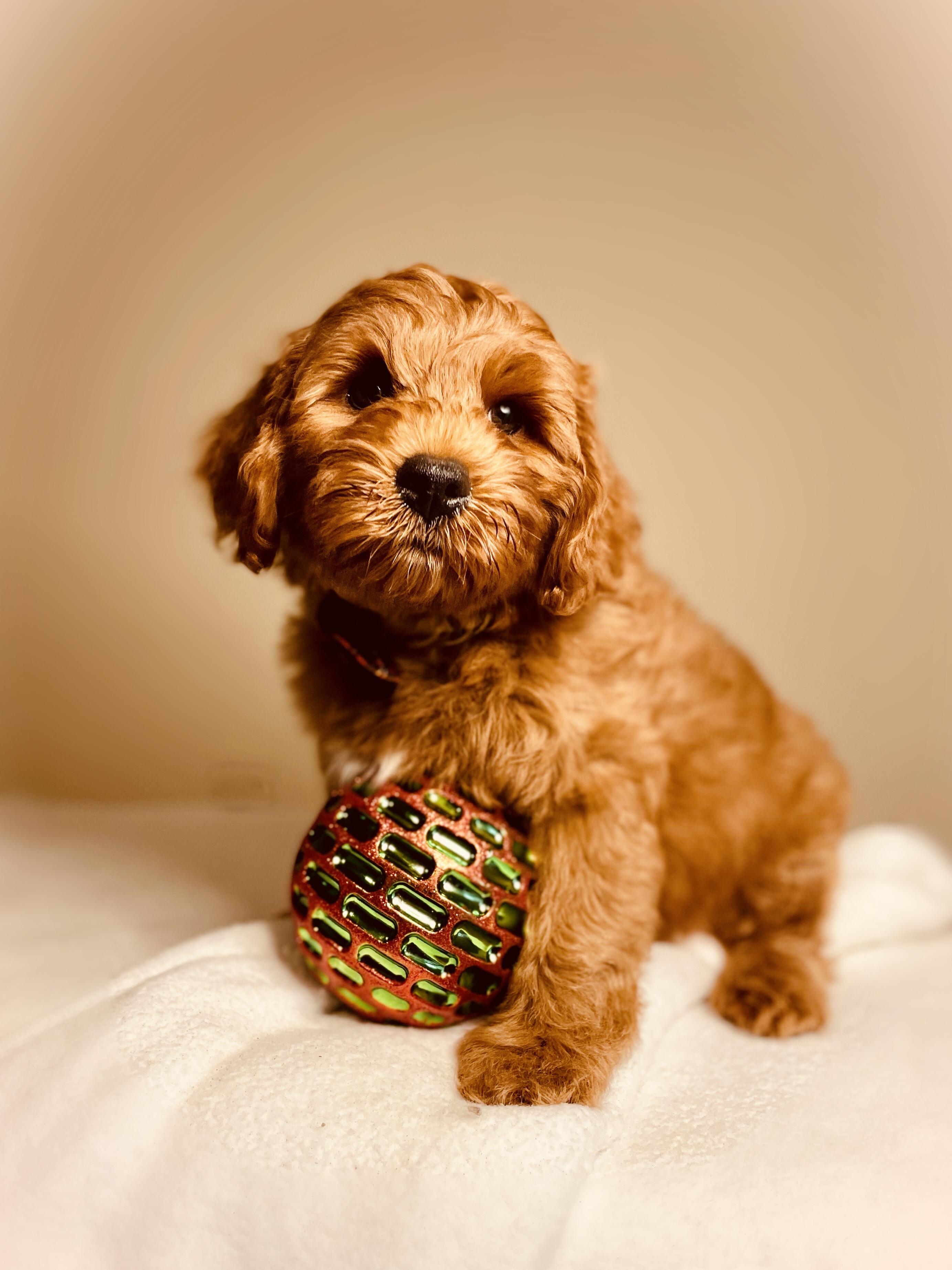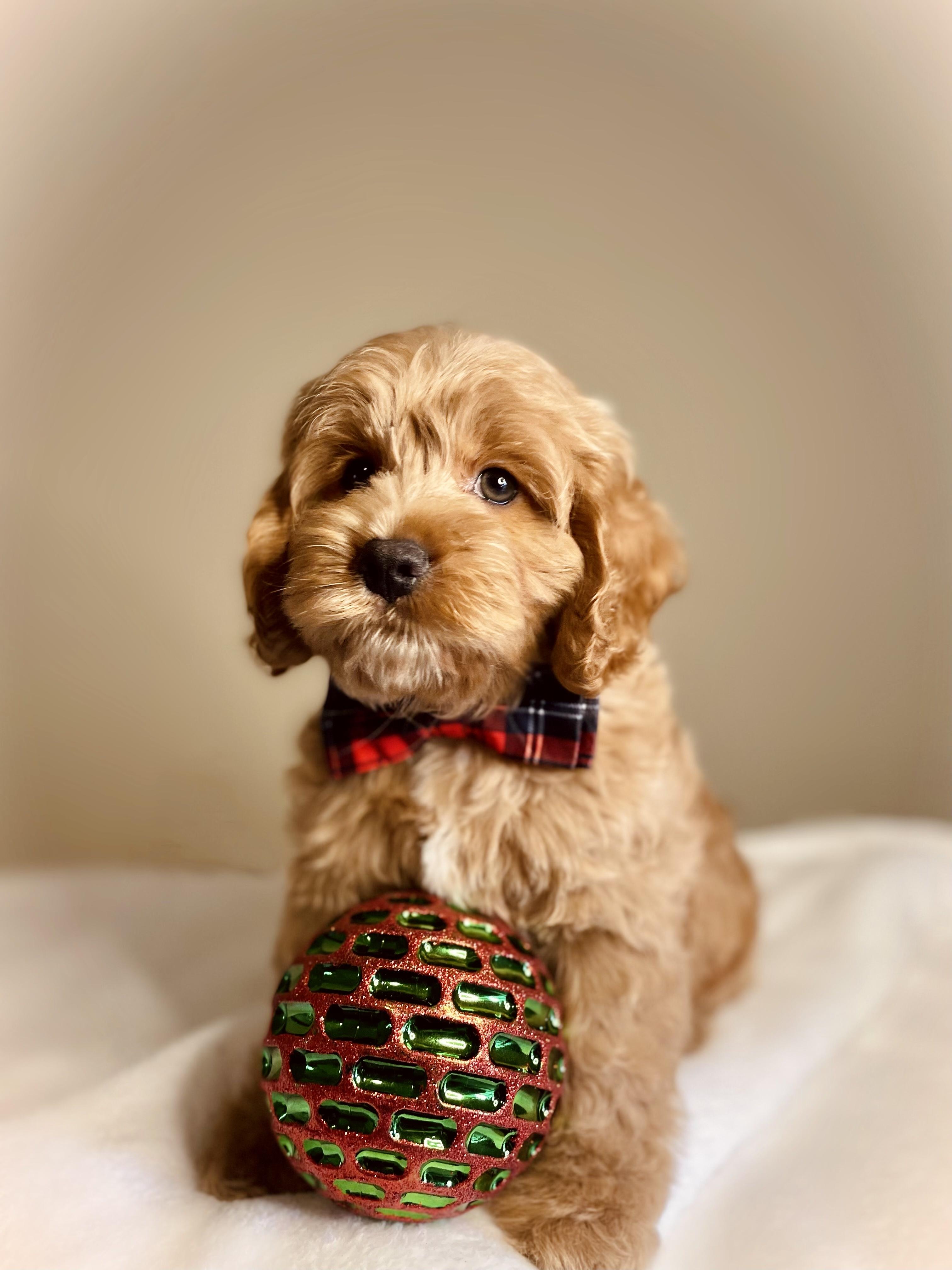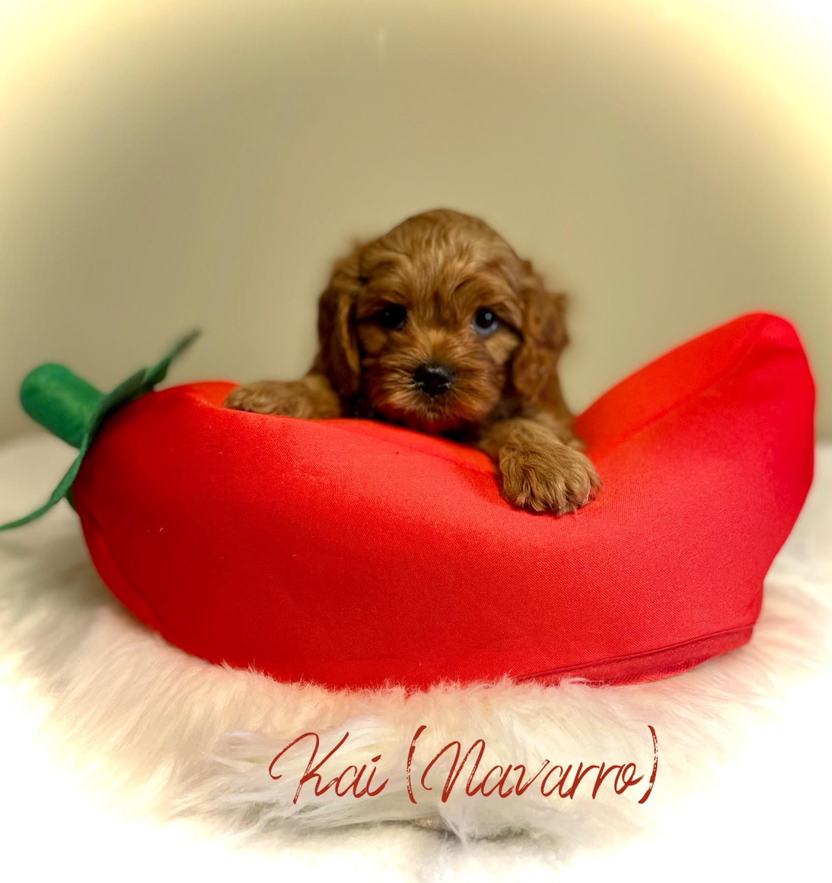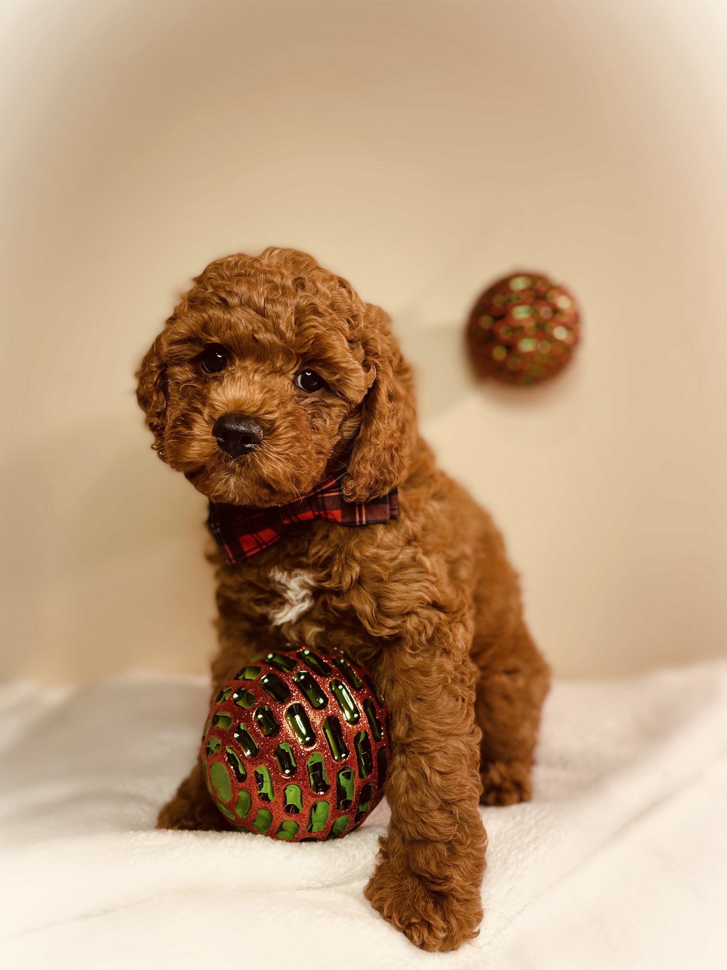 Our Cavapoo puppies are red. Poodle puppies are red. Colors will vary depending on the parent dogs.