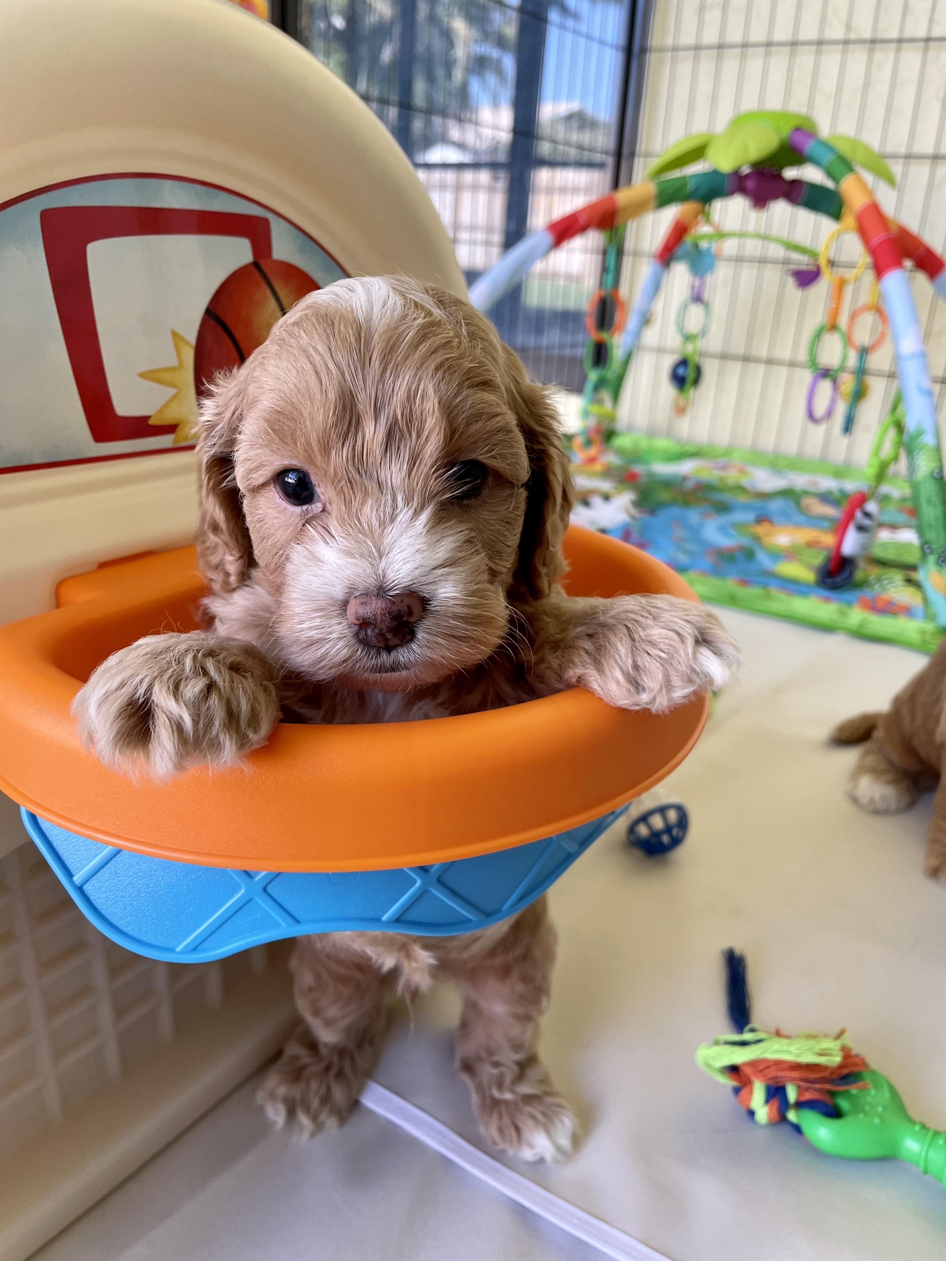 Chai is a female Cockapoo. Carefully selected as a great representative of her breed, Tanyja decided to make her part of their program. Tanyja has passed Good Dog’s screening process, which involved a review of their breeding practices, environment, and the mental and physical health of their dogs.