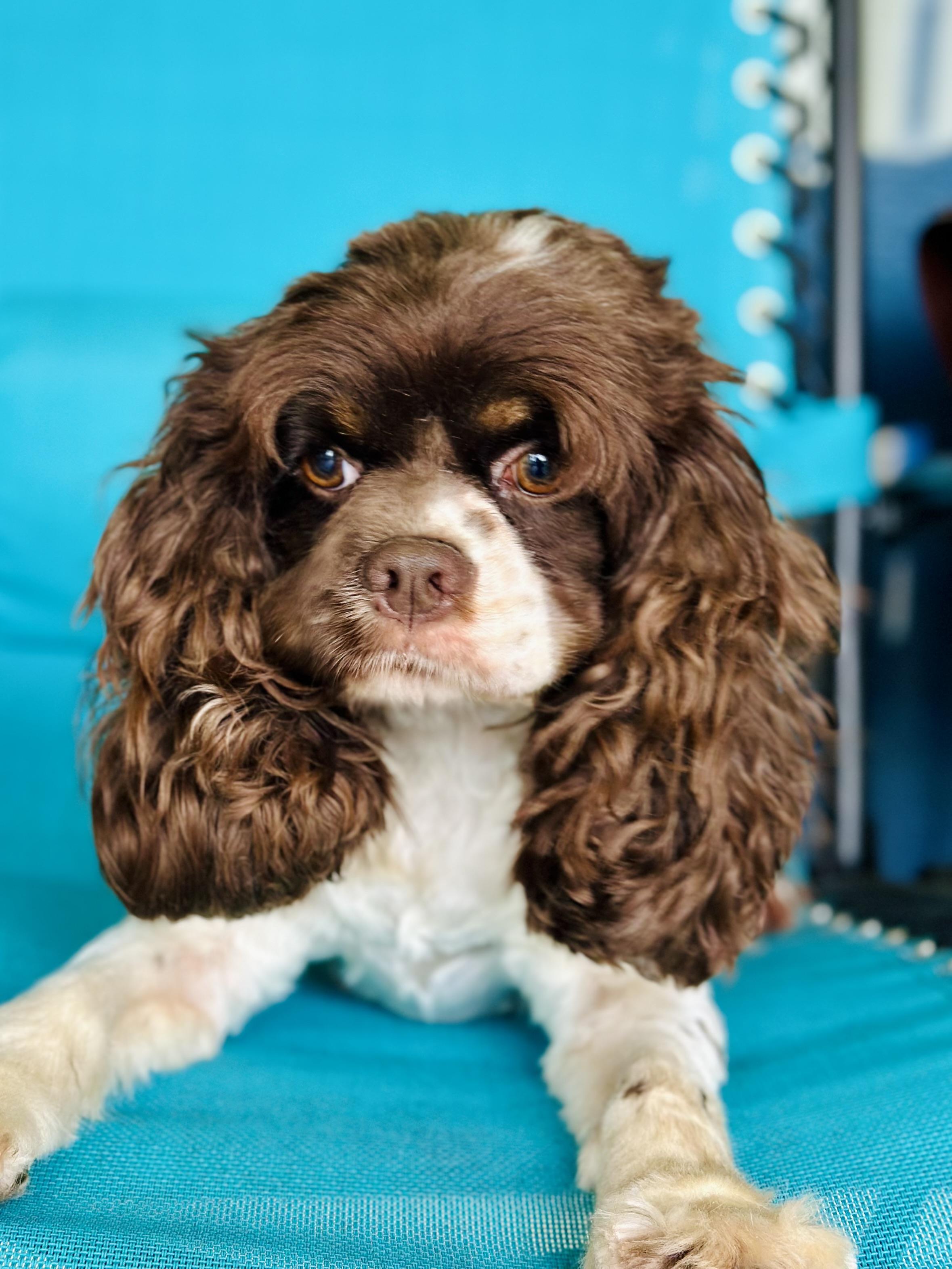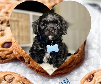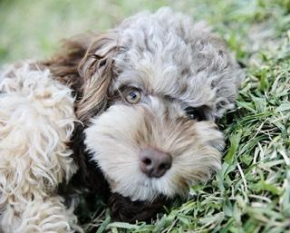 Bailey is a Mini Chocolate Parti Merle Cockapoo from AKC parents.