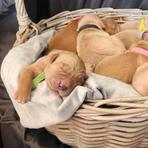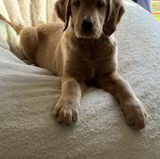 Rue is amazing!! She is so smart. She is a happy and playful puppy with lots of energy. She listen well and likes to cuddle. She learned how to shake in about 10 minutes! She loves our old golden Solo and he tolerate her..lol. Rue is so loved and we are so happy to have her be a part of our family.