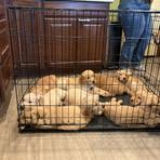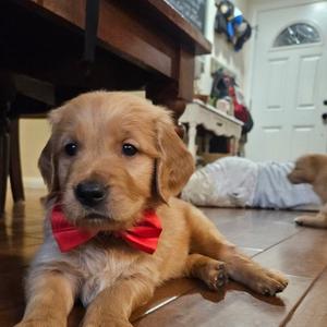 I am beyond thankful for Amy and Bennett Goldens. We had been looking for a puppy for over a year now and when I bumped into Bennett Goldens page on good dog I knew we had found the breeder that had my full trust. Her transparency from the start, and the fact that she was also interviewing me as much as I was interviewing the program was what really settled my mind. We picked up our Harvey almost two weeks ago and are so in love. He is such a great puppy, puts himself to sleep, poops in his grass patch, and love to show off any tricks he’s learned! I love how he is so desensitized to sounds, he can hear other dogs barking, people knocking, ambulances, you name it, he won’t react! That’s a true testament to the dedication Amy puts towards the puppies from such an early age. I am beyond happy that we decided to get a puppy from Bennett Goldens, and would recommend 100%, you will not regret your decision!