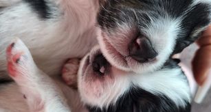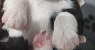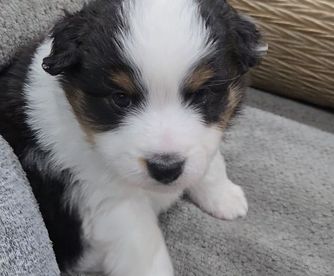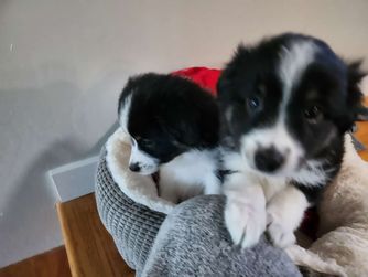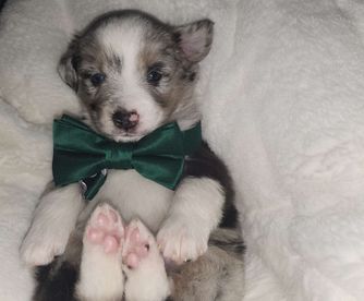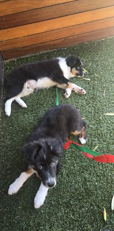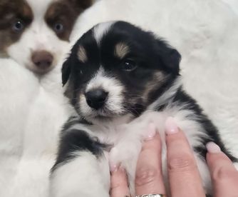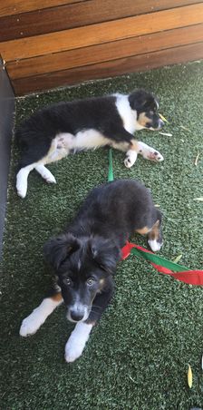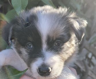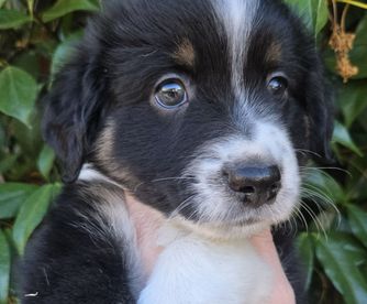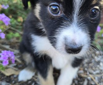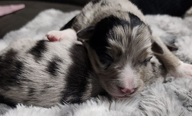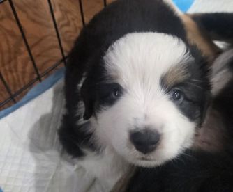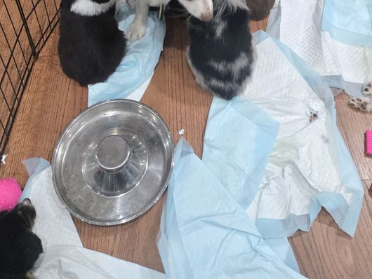 Our puppies include black & white, black tri, and blue merle. Colors will vary depending on the parent dogs.