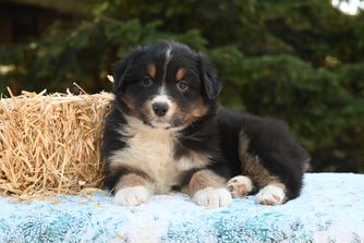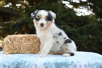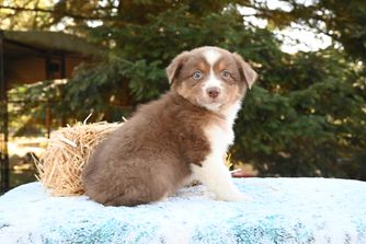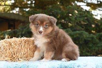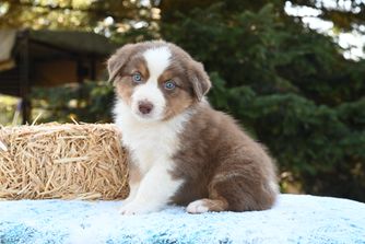 Our Australian Shepherd puppies include black, red merle, blue merle, and red. Colors will vary depending on the parent dogs.