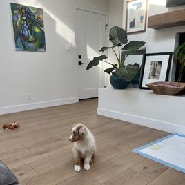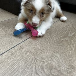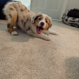 I had a very positive experience with Emily. She was incredibly responsive and always willing to answer any questions I had. It’s clear she genuinely cares about her pups and puts a lot of thought into their well-being. All of the puppies were healthy and happy, and we could tell they were raised in a loving environment. Emily gave us the opportunity to meet the puppies in advance and even provided a toy with their scent to help introduce them to our kitties, which really helped with the transition. Our pup, Islay, was already introduced to various noises and experiences before we picked her up, and she has the best temperament. I would highly consider purchasing another Australian Shepherd from Emily in the future and absolutely recommend her to others.