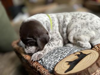 I'm Cassaundra F., the breeder behind Bequest German Shorthaired Pointers located in Belleville, MI. We focus on creating healthy, versatile, and beautiful dogs that can be enjoyed by everyone. Our dogs are what make our house a home! We are passionate about the German Shorthaired Pointer. We want to share this intelligent, loyal, and versatile powerhouse of a dog with others so that they too can experience all the wonderful things we have with ours!