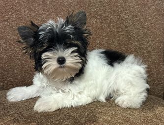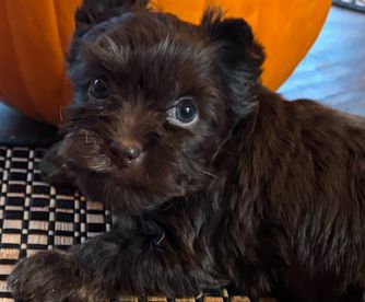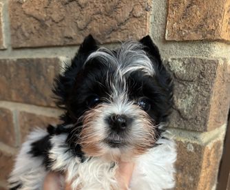 Black boy with some white points. Sweet and social with all the family and others. Weighing in around 4lbs