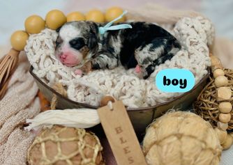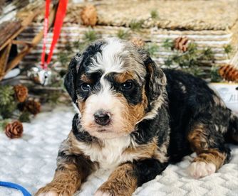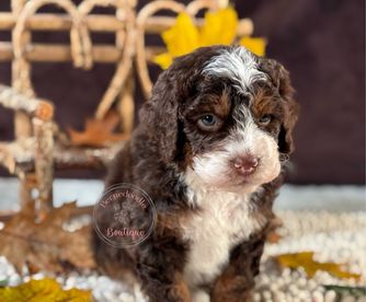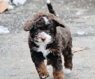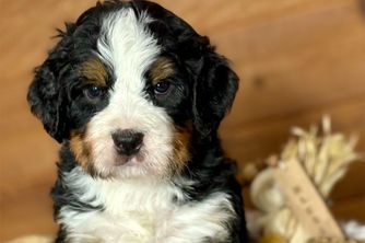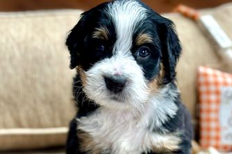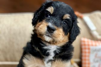 Our Bernedoodle puppies include brown and white, brown, tri-color, blue merle, and merle. Cavapoo puppies include merle, chocolate, blenheim, brown, red, tri-color, black and tan, and apricot. Colors will vary depending on the parent dogs.