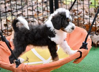 Our Bernedoodle puppies include mini, medium, and standard sizes. Cavapoo puppies are miniature size. Sizes will vary depending on the parent dogs.