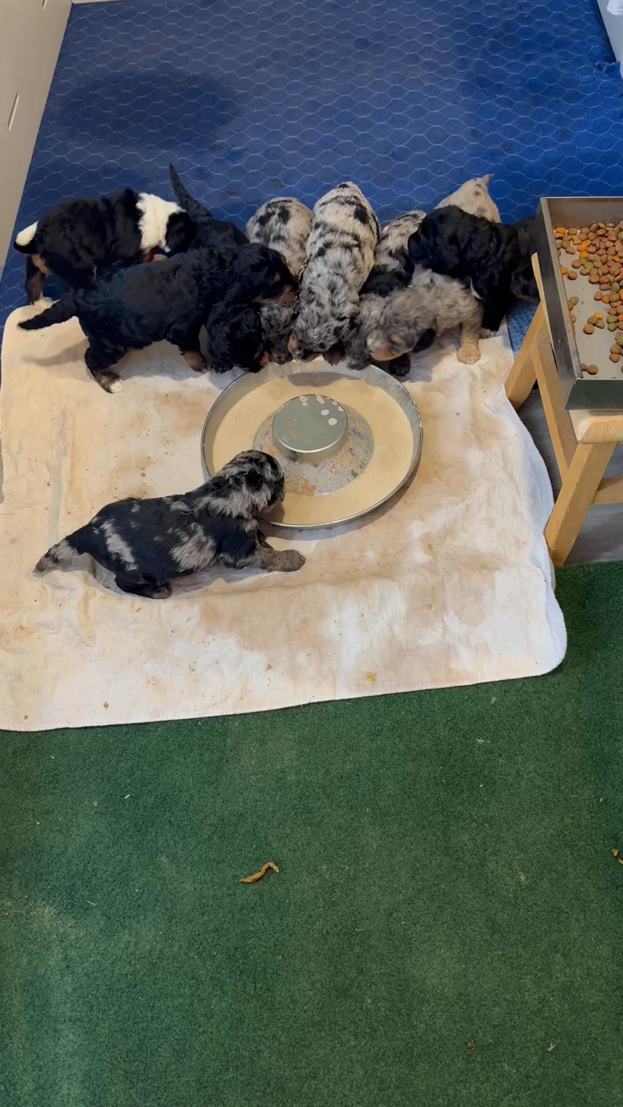 🐾 Big Puppy Milestones Today! 🐾 The puppies officially turned three weeks old today, and it was a BIG day for learning and exploring! They had their very first taste of puppy mush, and let’s just say opinions were formed 😄 We also celebrated a win for little Red Collar (Rose), who is already figuring out how to use the Astroturf potty area instead of her sleeping space—a huge step at this age! Watching these tiny brains turn on and connect the dots is one of my favorite parts of raising a litter. So proud of these babies! 💕🐶