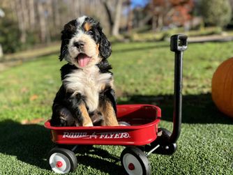 Lara was quick to respond, helpful and very knowledgeable about this breed as well! She made the transition from her home to ours very helpful and easy with our new puppy! She kept us up to date daily until the day we picked him with texts, pictures/videos. She gave a welcome home bag with food and puppy essentials that made the process so easy! So grateful we found Lara and our bernedoodle puppy, Goose, is truly the favorite with everyone in our home! His sweet demeanor and gentle personality is absolute gold. He also loves the car, which is all thanks to Lara!!