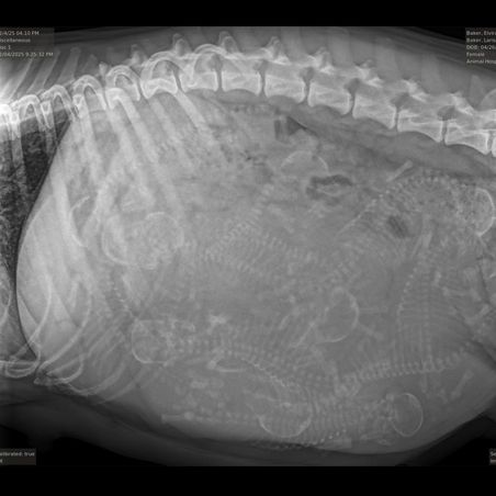 Elvira had her X-ray today, and our vet confirmed she’s carrying a big, healthy litter—at least ten babies. She’s being spoiled with love and care as we get ready to welcome her pups.