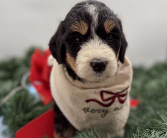 Poodle puppies include sable, brown, red, parti, phantom, and brindle. Bernedoodle puppies include black and white, tri-color, phantom, and merle. Colors will vary depending on the parent dogs.