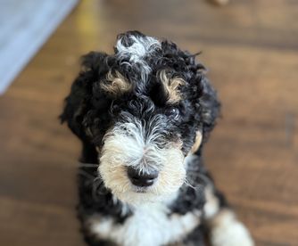 I'm Daniel W., the breeder behind Bernedoodles of Kentucky located in Richmond, KY. The puppies are F1B standard Bernedoodles. The dam (mother) Zahara is Merle(one copy of this gene) F1 Bernedoodle that is three years of age. Zahara has had a full Embark panel of genetic testing and is clear for any health risks. The Sire (father) Stetson is a Brindle Phantom Standard Poodle.